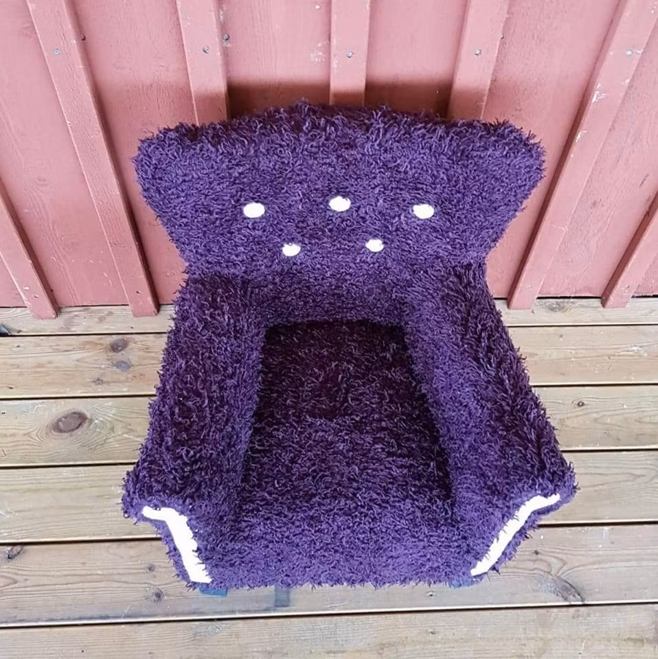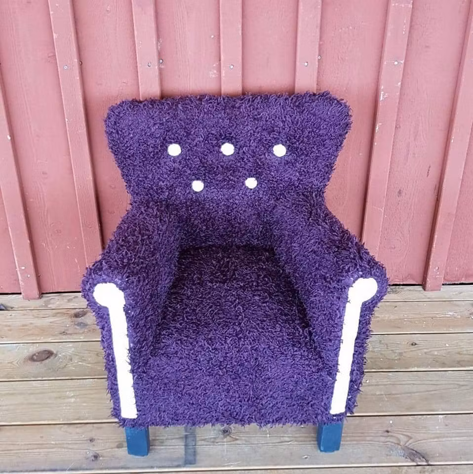 En dekorativ och personligt unik #barnfåtölj som är tillverkad från grunden och klädd i gosigt "nalletyg"