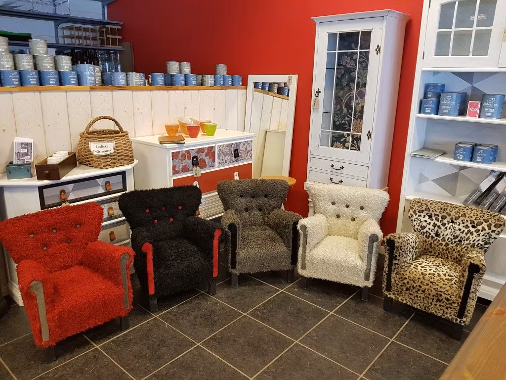 Barnfåtöljer tillverkar vi på beställning och vi kan skicka med Postnord inom Sverige. Kontakta oss för prisuppgift