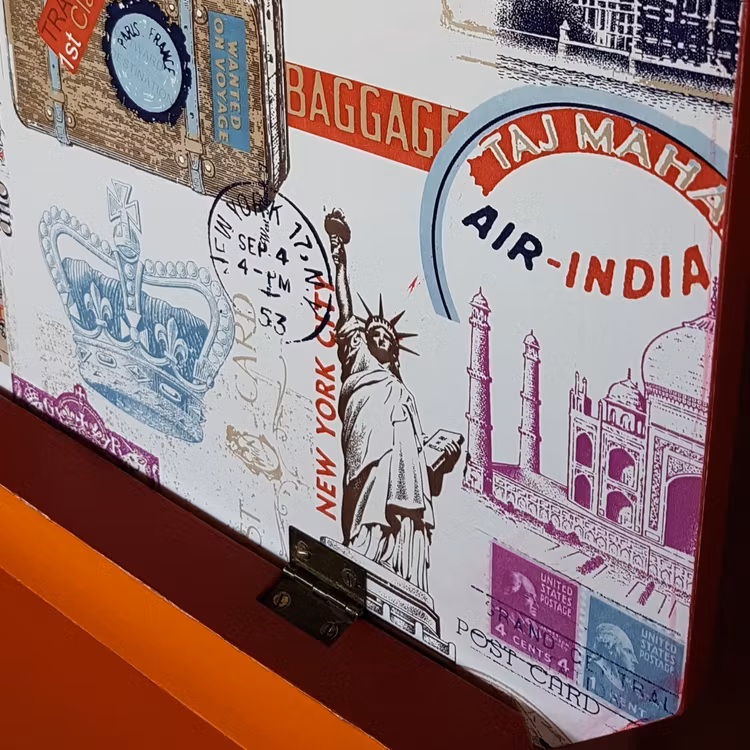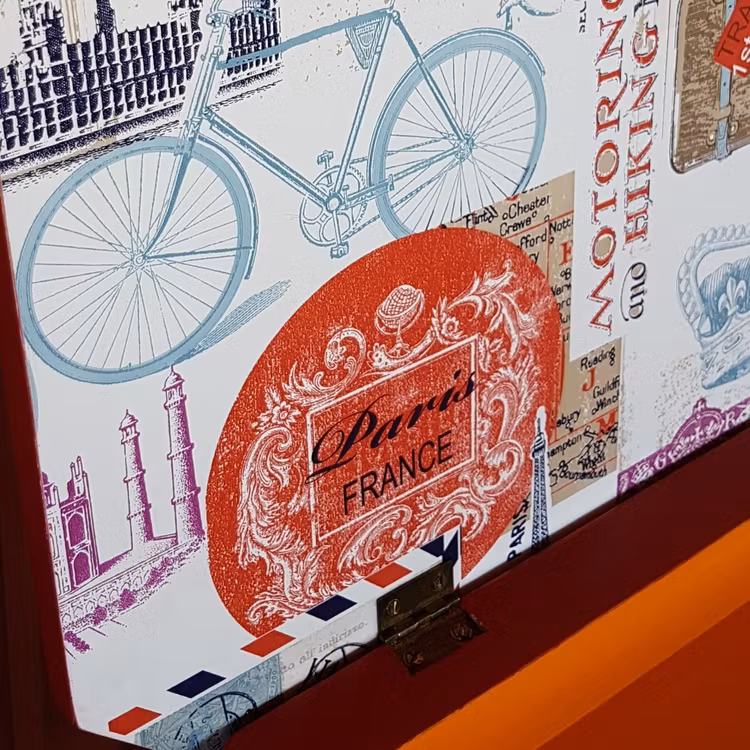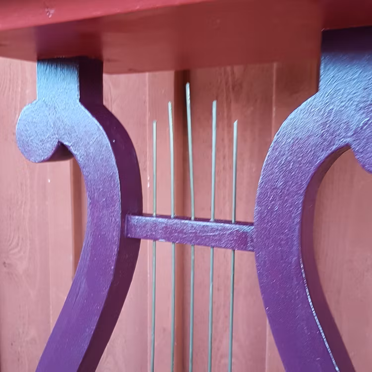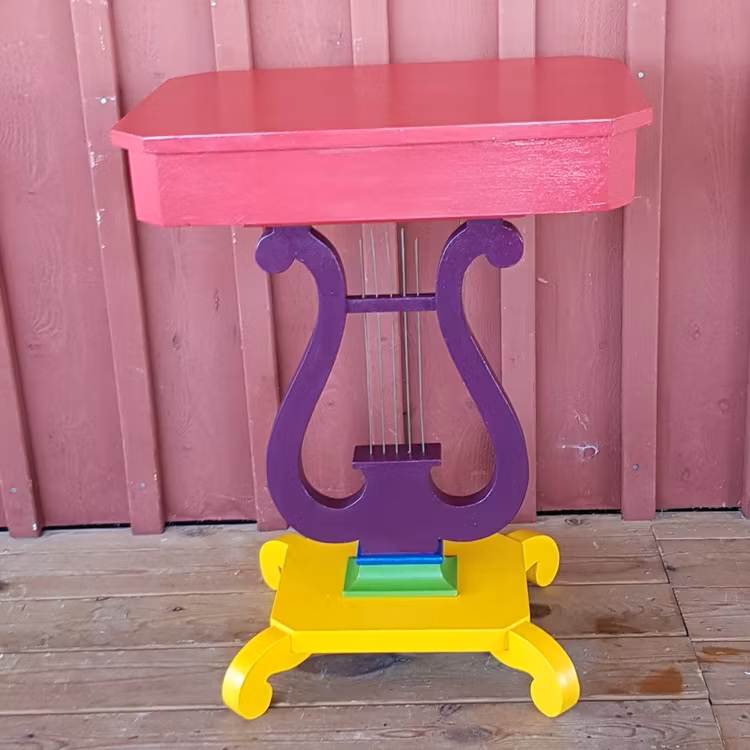 Ett färgglatt och personligt musikbord som är målat med kritfärg av märket #Autentico i regnbågens färger.