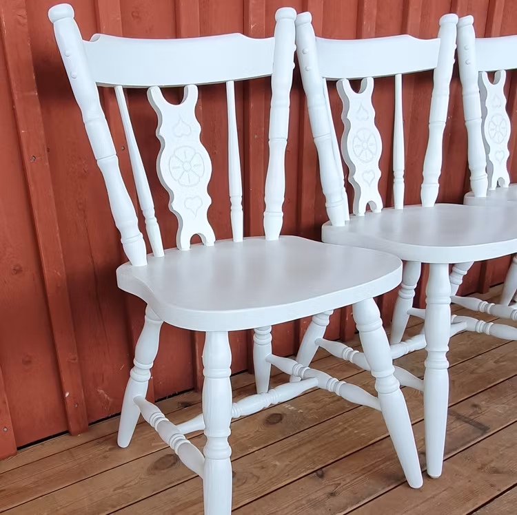 För kunds räkning har jag gett fyra köksstolar nytt liv med kritfärg av fabrikatet Autentico Versante Eggshell i kulören Ice cream