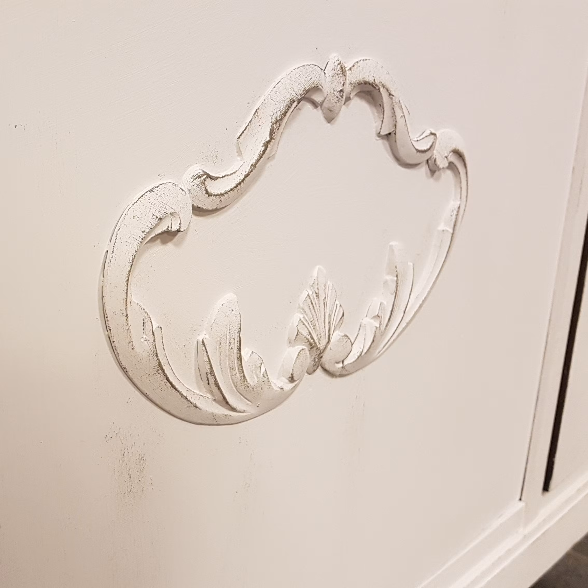För kunds räkning har jag fräschat upp en vacker och klassisk skänk. Den är målad med #Autentico Versante i kulören Pebbels och borstad med kulören French grey.