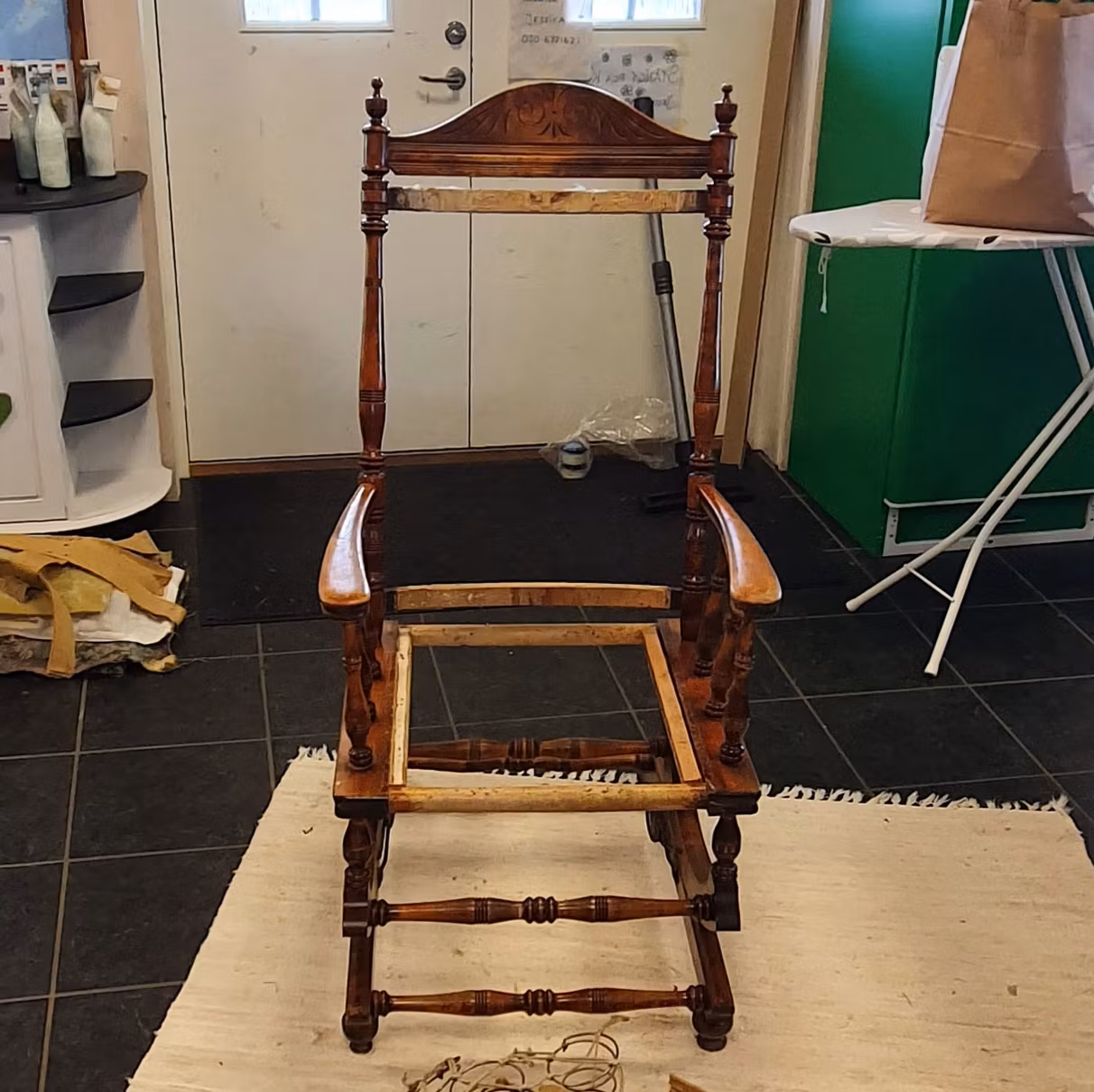 #möbelrenovering #möbeltapetsering #gungstol #amerikanskgungstol #sadelgjord #mjölby