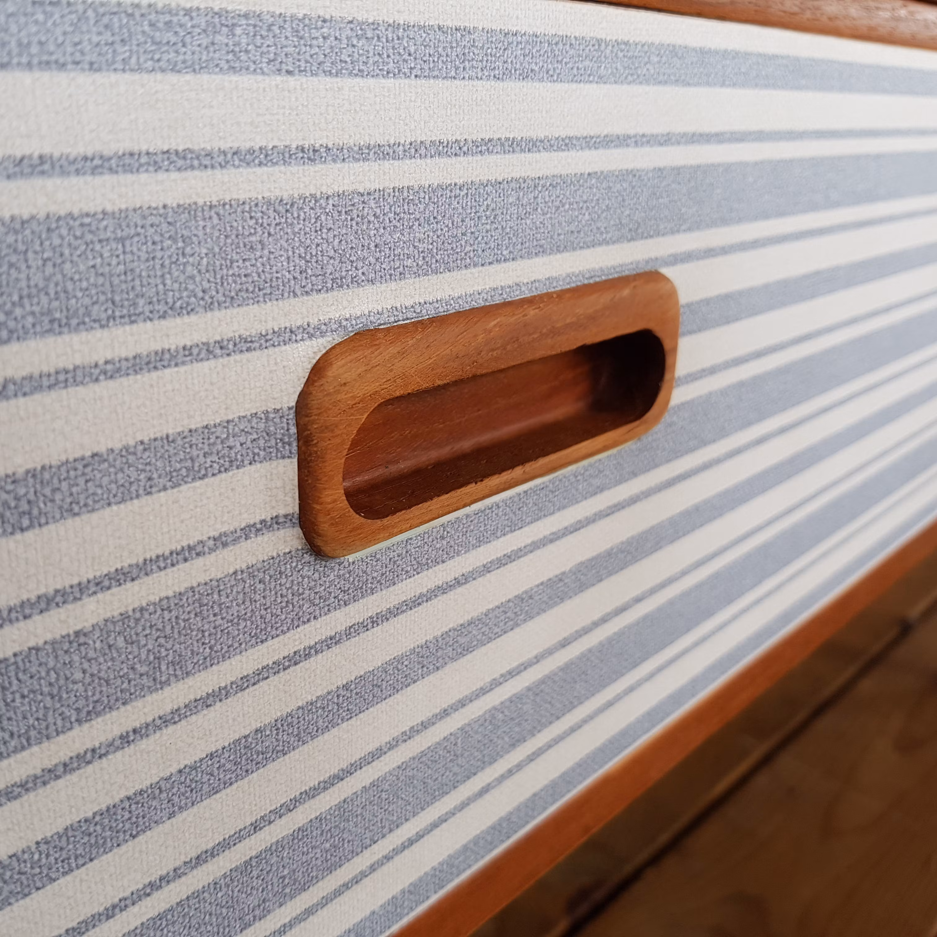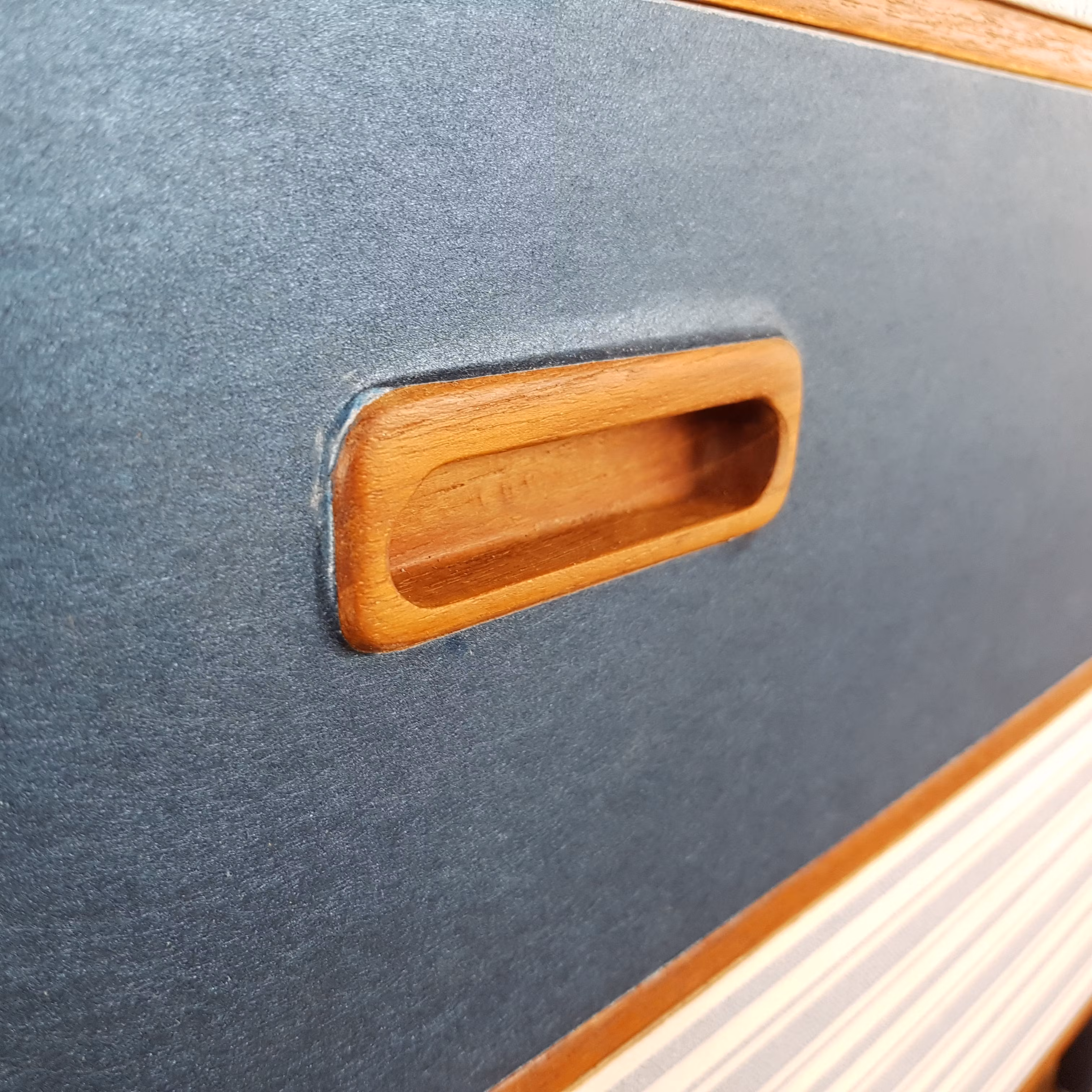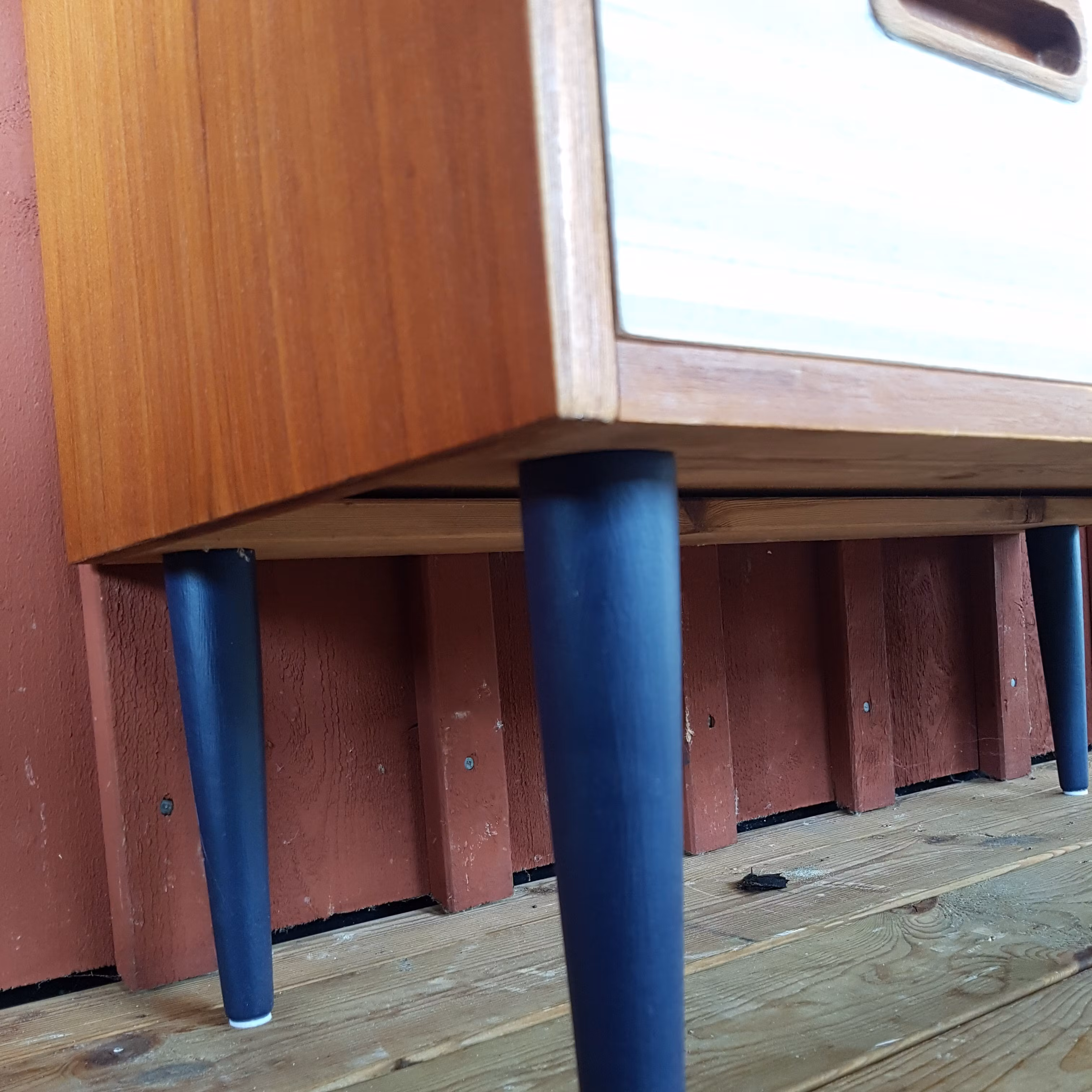 För kunds räkning har jag slipat och fräschat upp en trött byrå. Behandlat stommen med #Autentico hårdvaxolja clear för tålighet och lyster. Och klätt lådfronter med tapeter i nyans av blått för att matcha kundens övriga inredning.