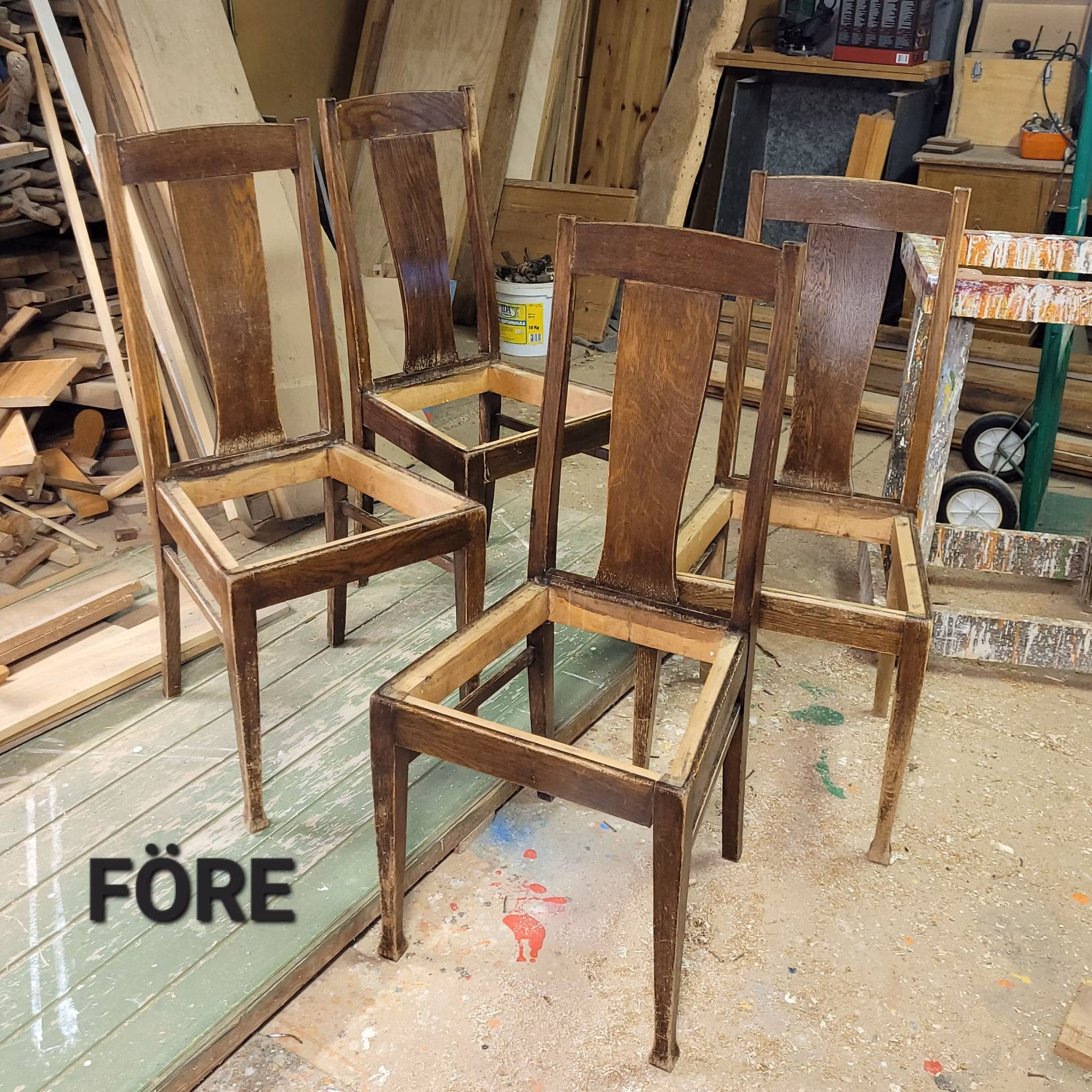 För kunds räkning har jag renoverat 4 st ekstolar. Slipat, betsat och oljat in dem på nytt, samt satt på nytt tyg.