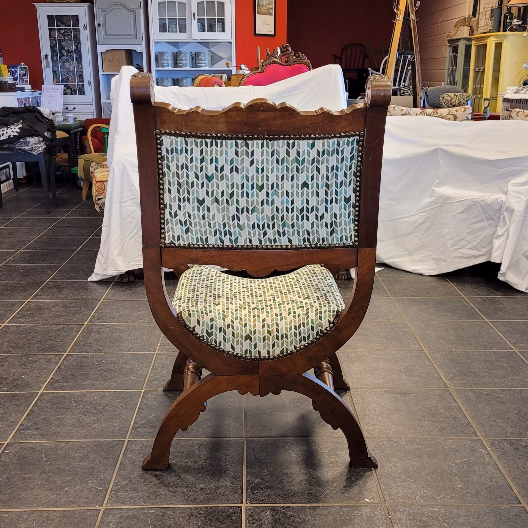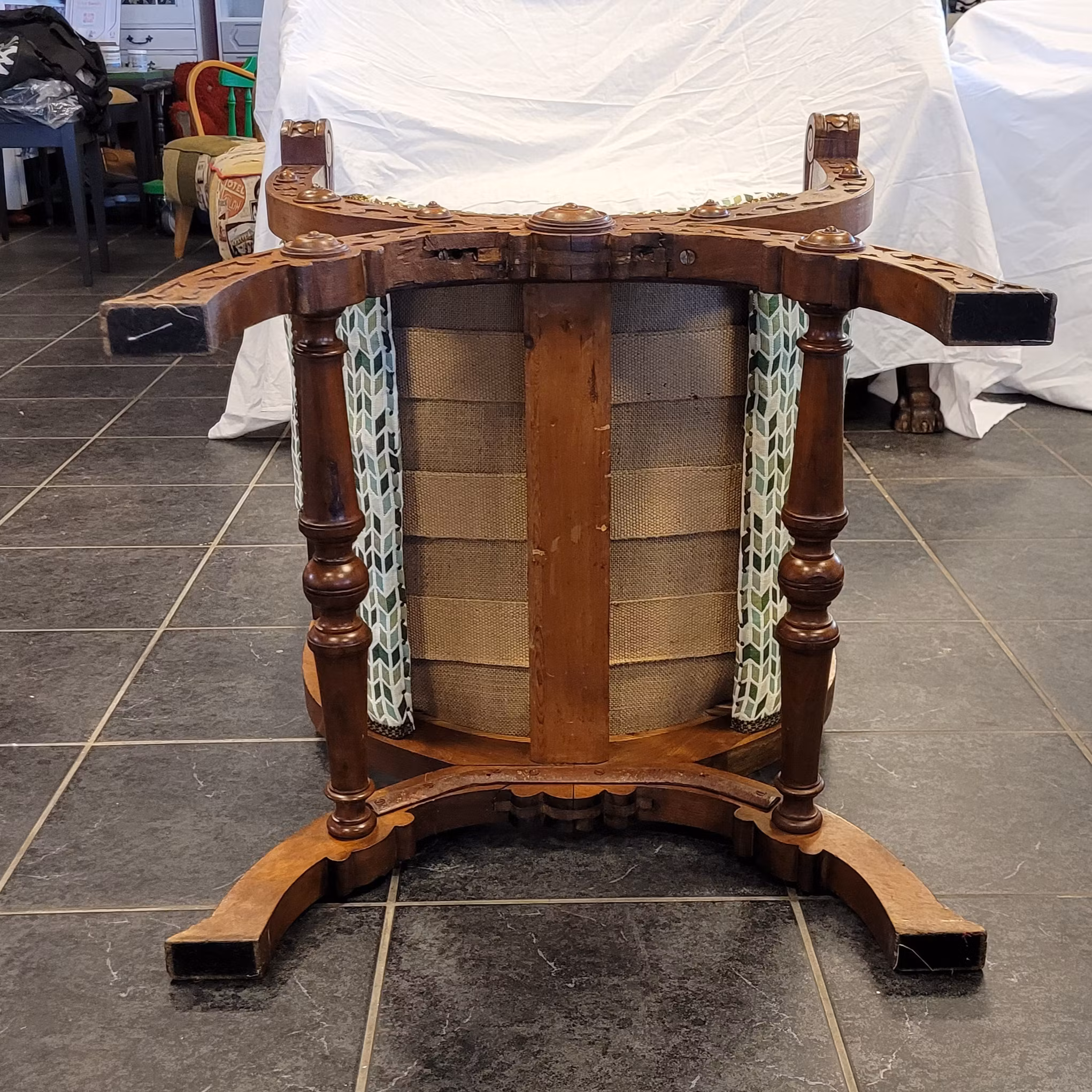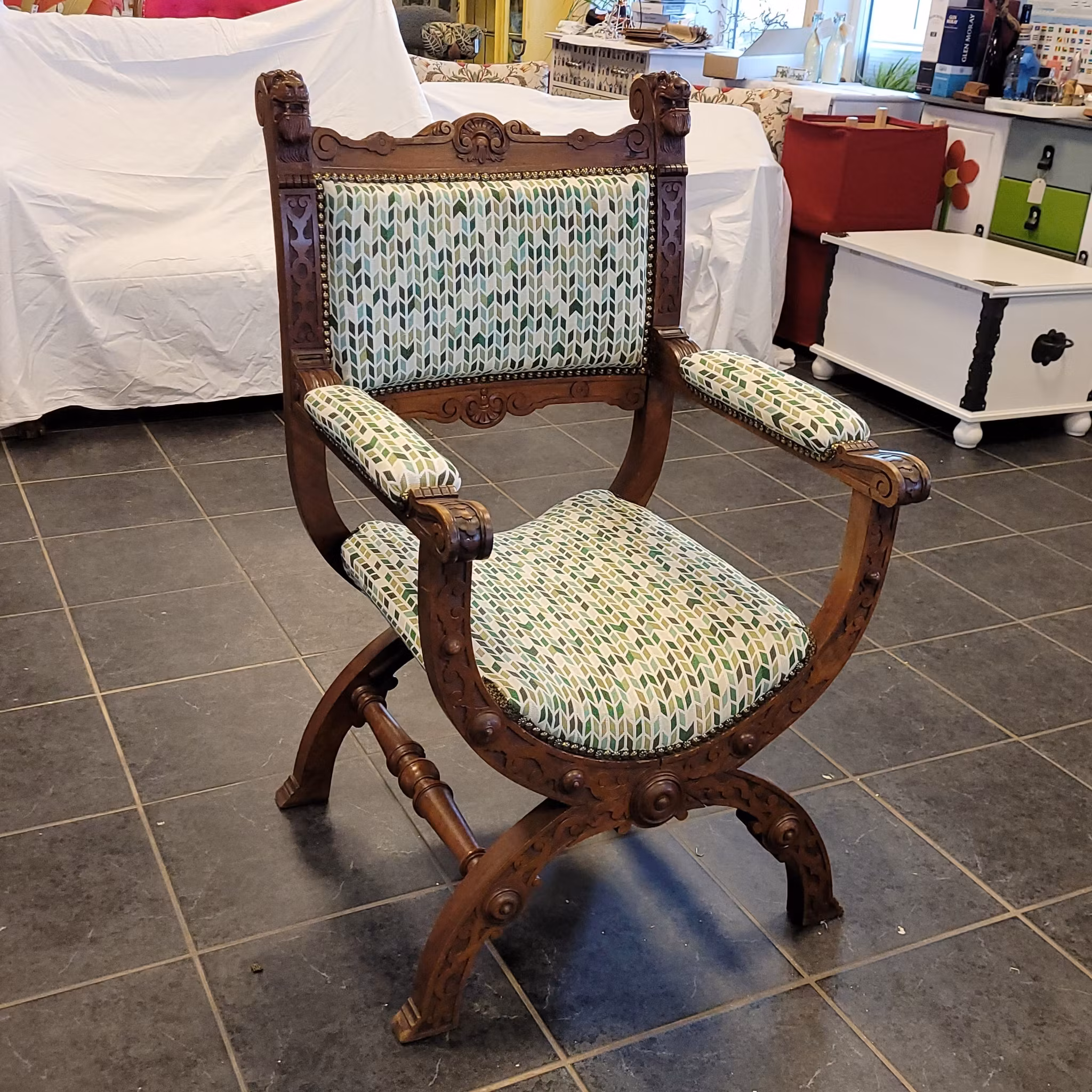 #möbelrenovering #möbeltapetsering #karmstol #ekstol #lejonhuvud #gjuteväv #sadelgjord #tygse