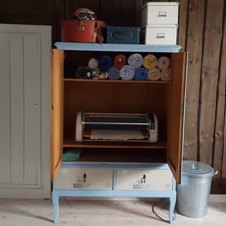 För kunds räkning "mig själv" har jag anpassat ett linneskåp och skapat ett perfekt mangelskåp som gömmer mangeln när den inte används.