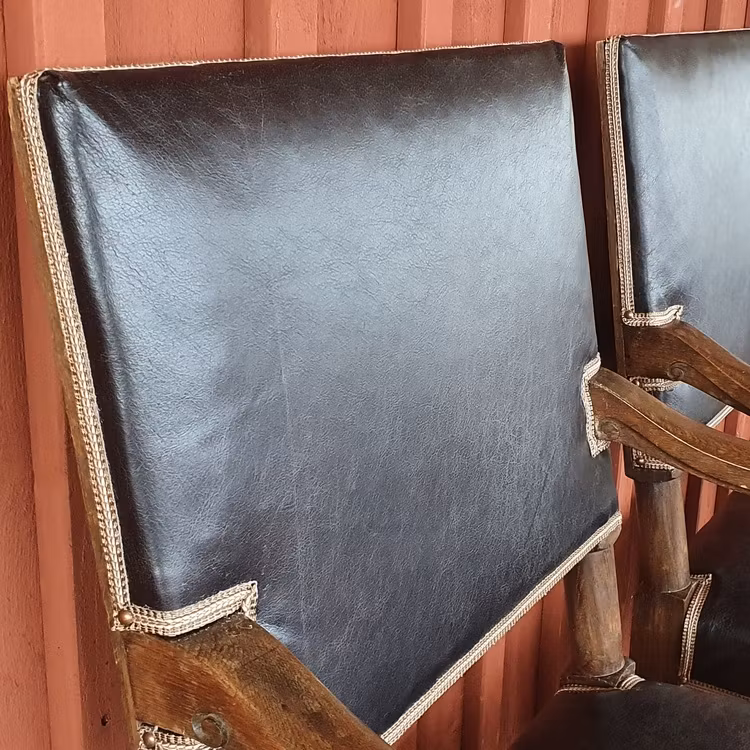 Matsalstolar i skinn "Renoveringsuppdrag"
