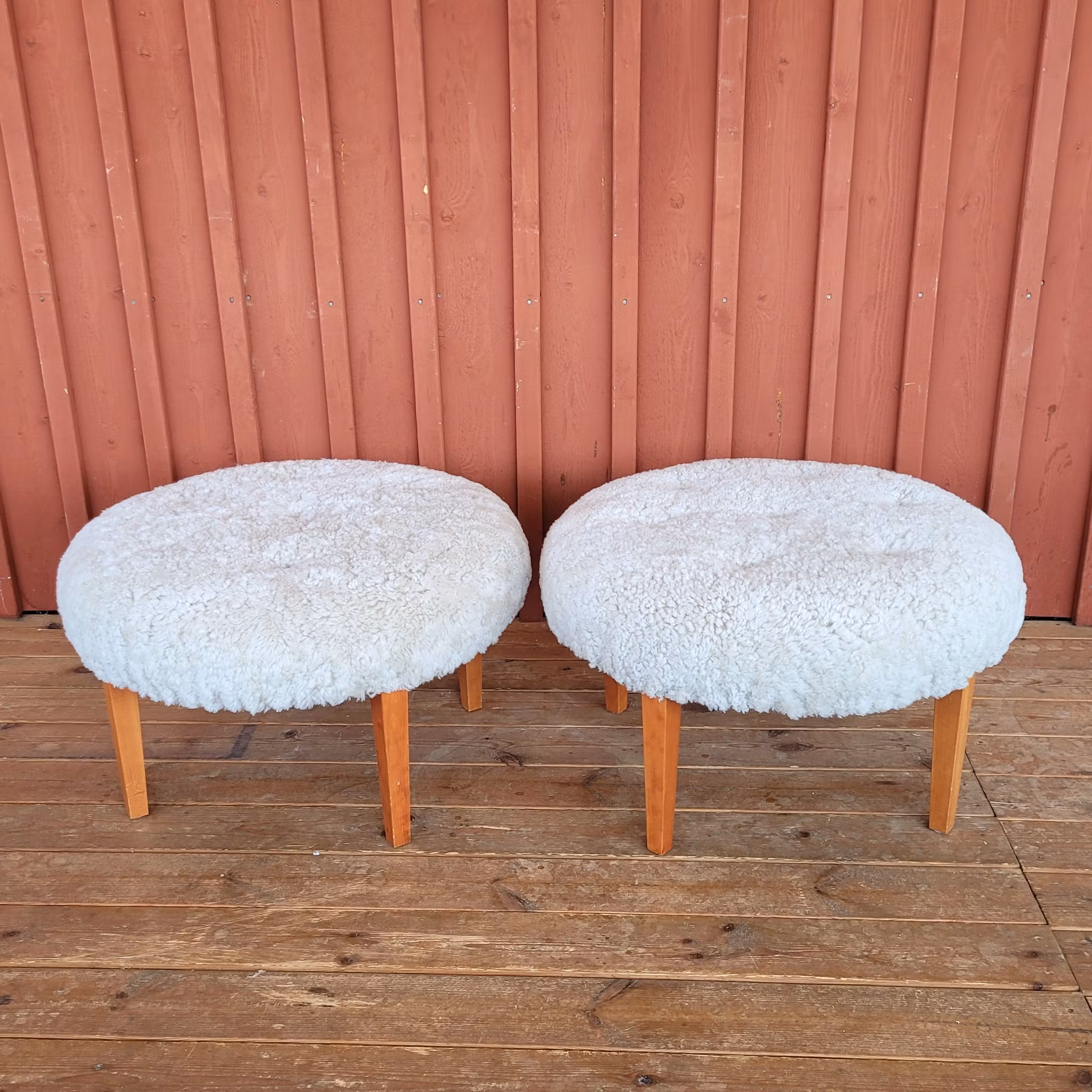 För kunds räkning har jag bytt ut slitet tyg till fårskinn på två urläckra Pall 647, Svenskt Tenn, Josef Frank. Det tidigare klassiska orginaltyget Elefant av designern Estrid Ericson hade bokstavligen gjort sitt.