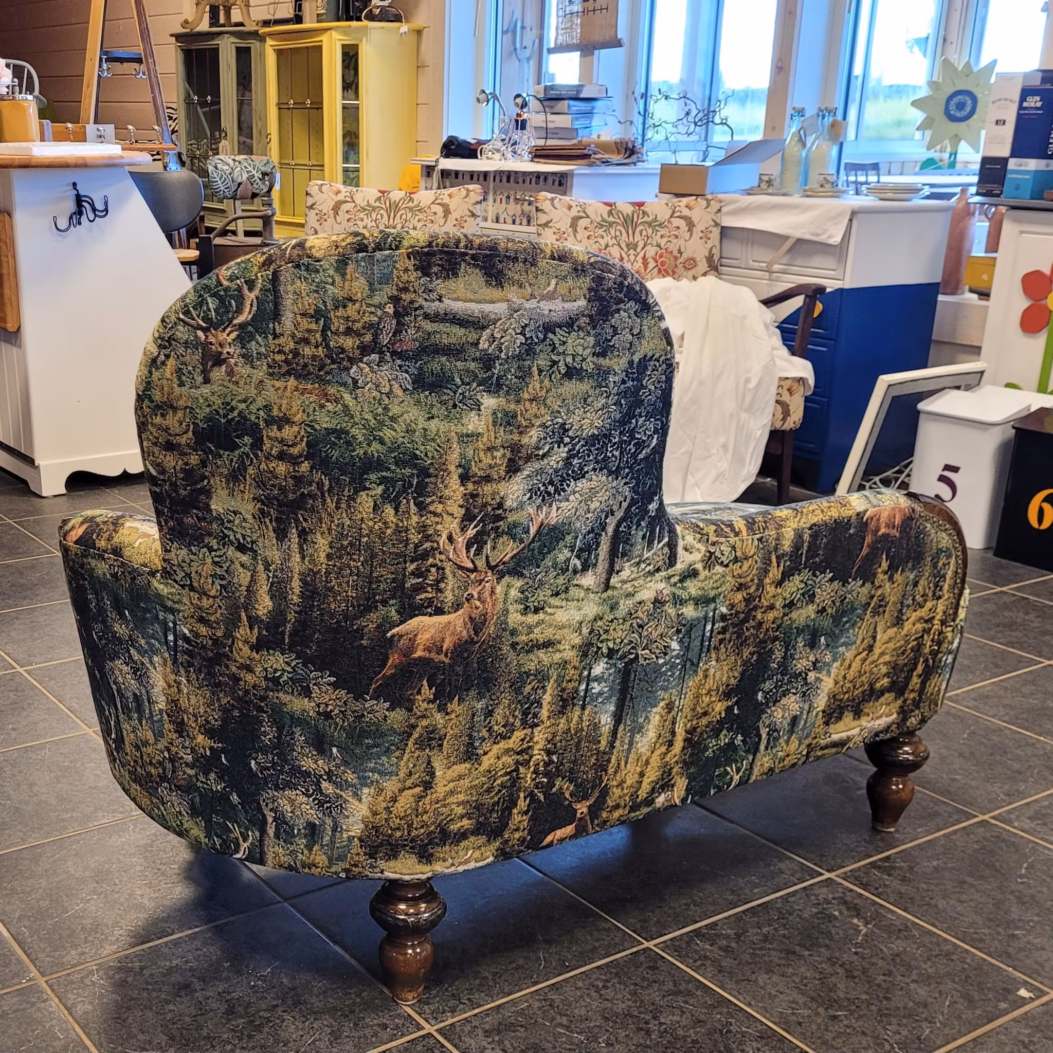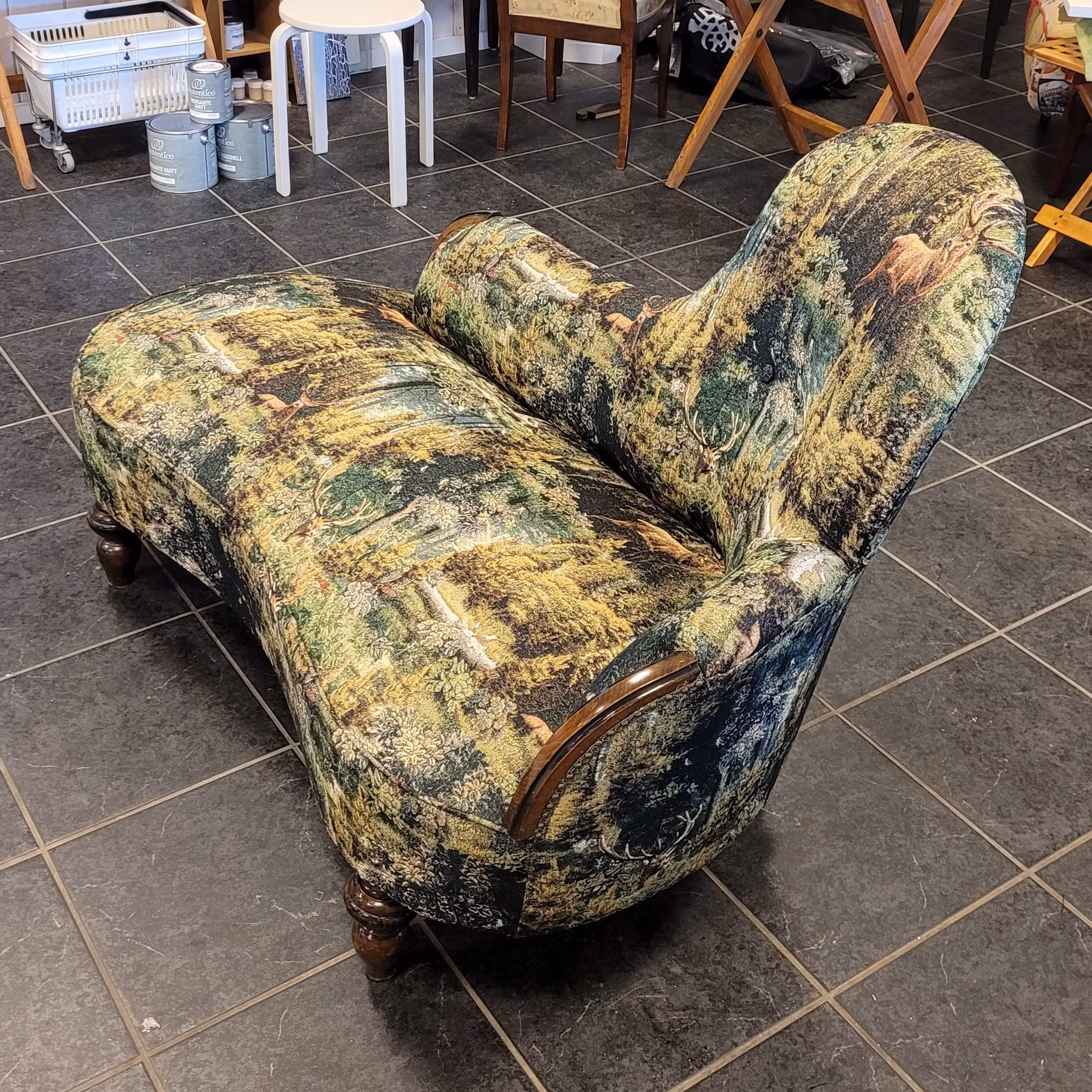 #möbelrenovering #möbeltapetsering #bisband #möbelspik #schäslong #divansoffa #soffa #jakttyg #jaktstuga #nordisktextil