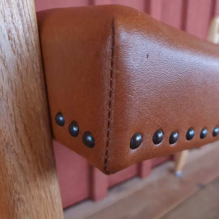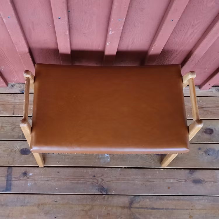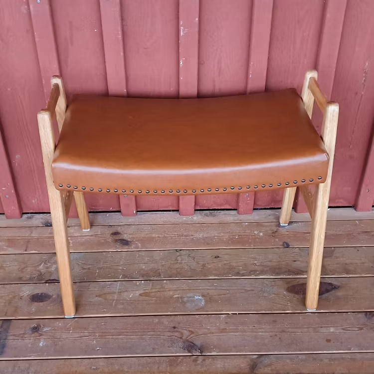 En stilren taburett/pianopall/fotpall i klassisk modell. Sidostycken är slipade och behandlade med hårdvaxolja #Autentico clear. Sitsen är tvättad och behandlad med kronans läderfett.