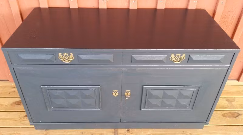 Personligt designad bänk som lämpar sig som TV-möbel. Men som kan användas till annan förvaring.